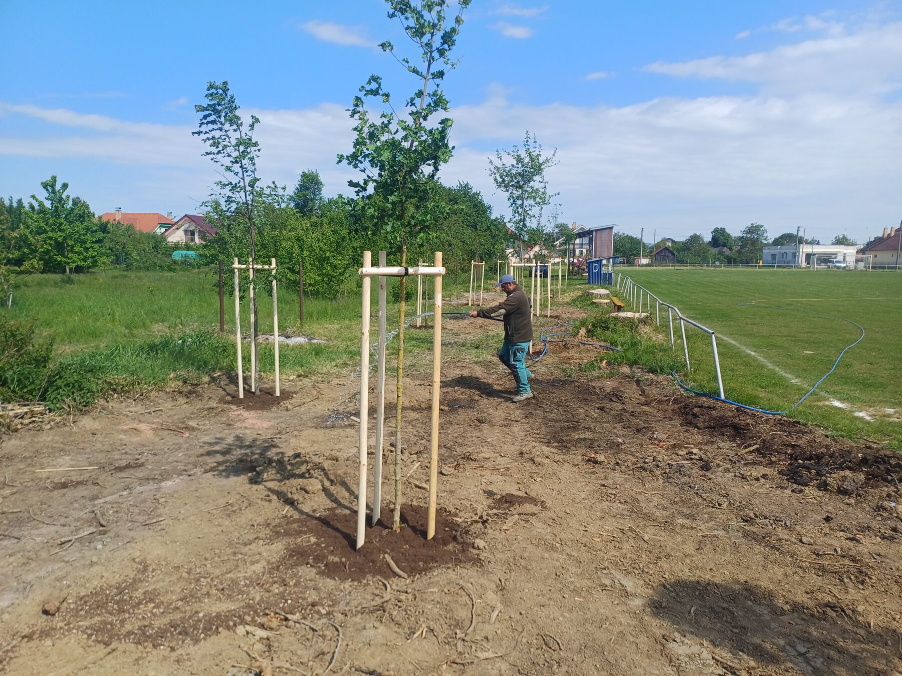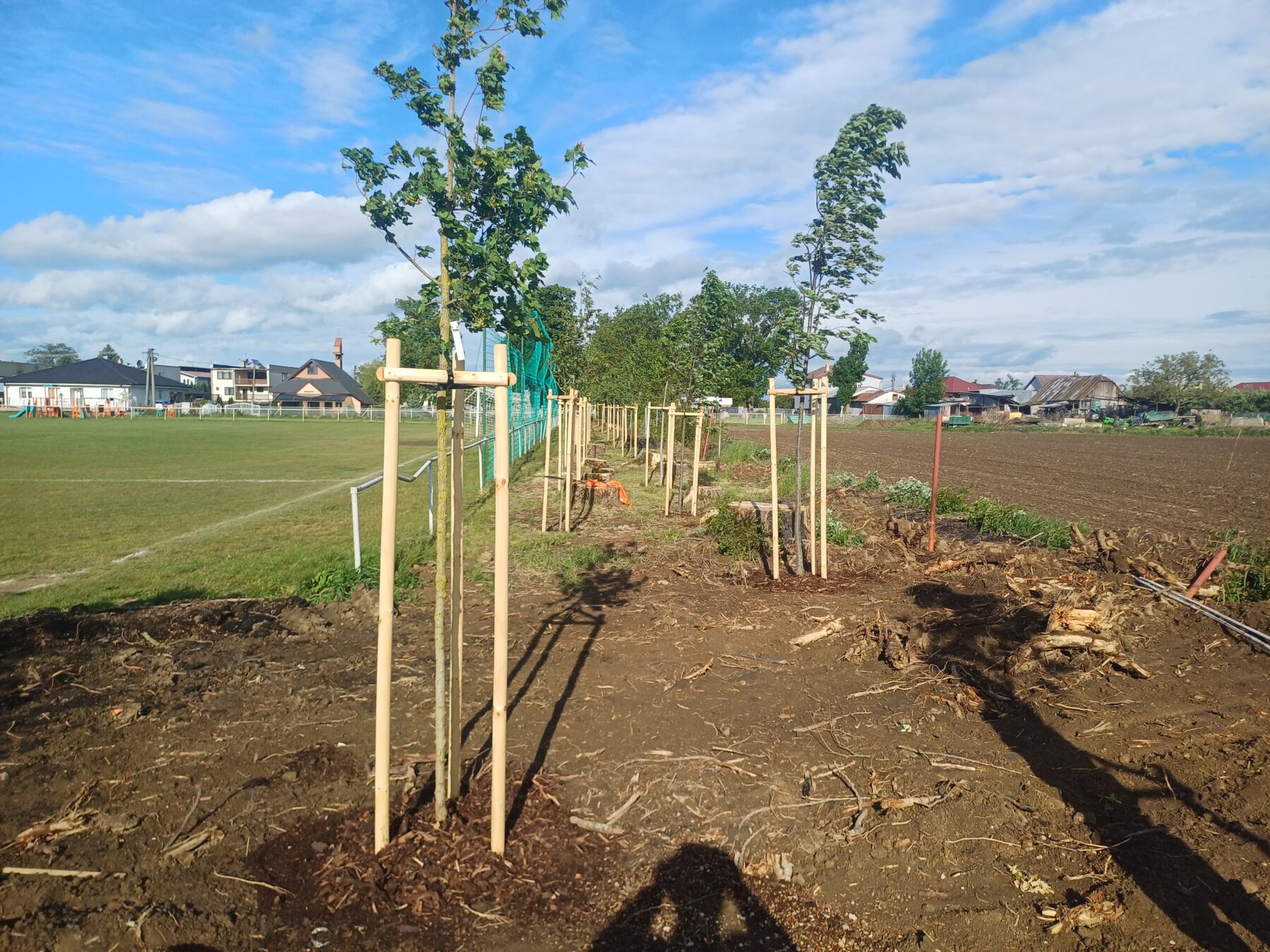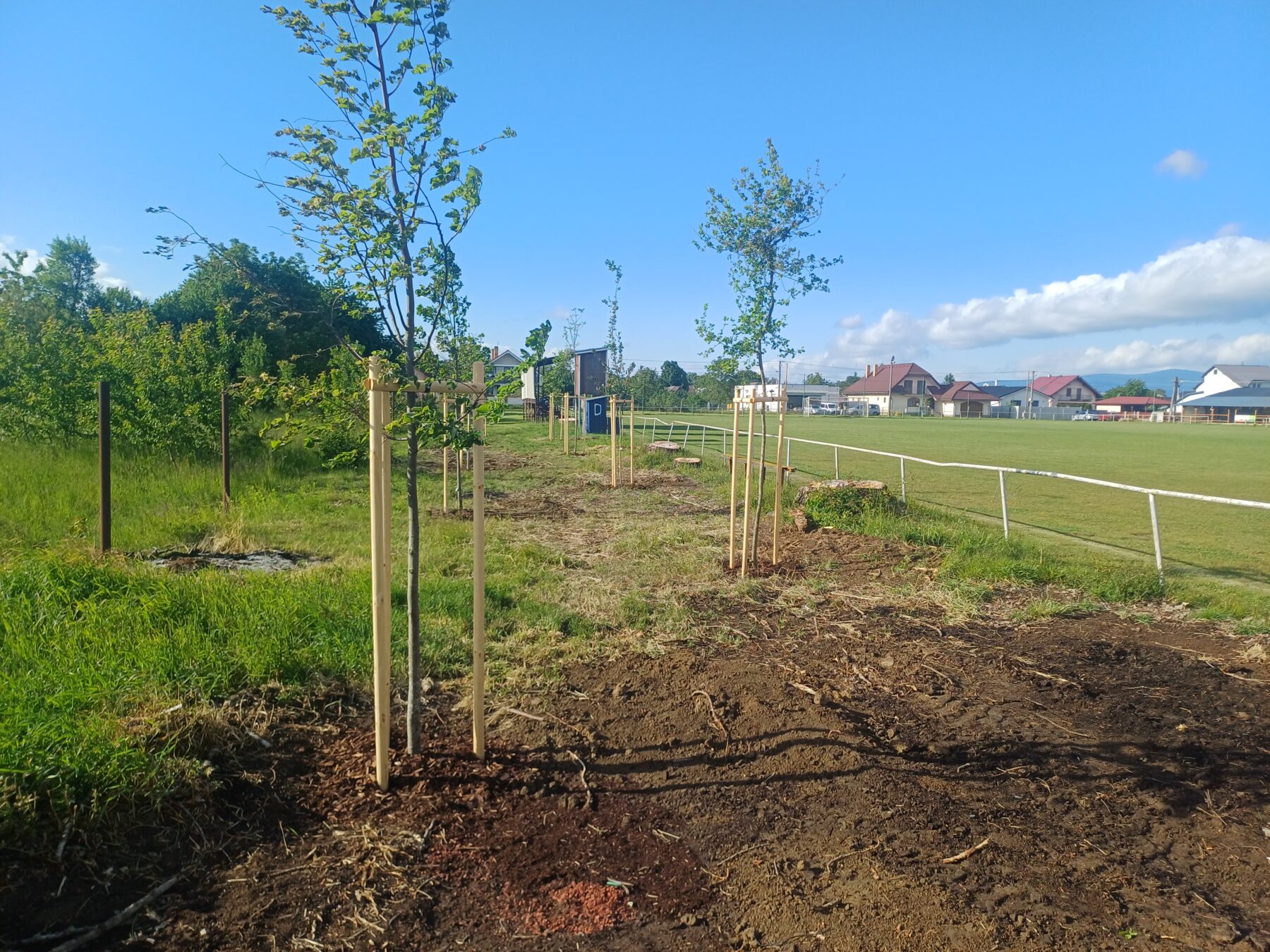 minulý týždeň boli ukončené posledné práce na projekte „Obnova vegetačného pásu zelene na futbalovom ihrisku“. Boli vysadené nové stromčeky podľa vypracovanej projektovej dokumentácie v počte 28ks a to konkrétne lipa malolistá v počte 10ks, jaseň v počte 5ks, hruška obyčajná v počte 4ks, jarabina mukyňová v počte 3ks a javor poľný v počte 6ks. Dotáciu na tento projekt sa nám podarilo získať z Enviromentálneho fondu v rámci programu obnovy dediny od Slovenskej agentúry životného prostredia. Cieľom projektu je obnova vegetačného pásu zelene v okolí hracej plochy futbalového ihriska v Krásnovciach.
