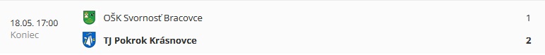 už túto nedeľu 18. mája 2025 so začiatkom o 17.00 hod. sa na futbalovom ihrisku v Bracovciach odohrá zápas medzi domácim mužstvom OŠK Bracovce a TJ POKROK Krásnovce.